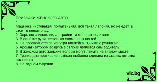 ПРИЗНАКИ ЖЕНСКОГО АВТО 1.
