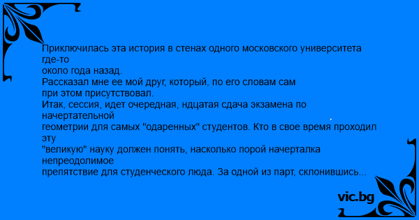 Итак, сессия, идет очередная, ндцатая сдача экзамена по начертательной