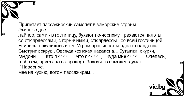 лайнер, сами - в гостиницу, бухают по-черному, трахаются пилоты
