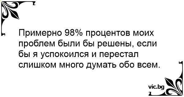 Примерно 98% процентов моих проблем были бы решены, если бы я успокоился и перестал слишком много думать обо всем.