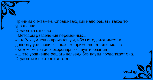 Принимаю экзамен. Спрашиваю, как надо решать такое-то уравнение.