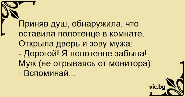 - Дорогой! Я полотенце забыла!