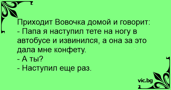 - Папа я наступил тете на ногу в автобусе и извинился, а она за это дала мне конфету.