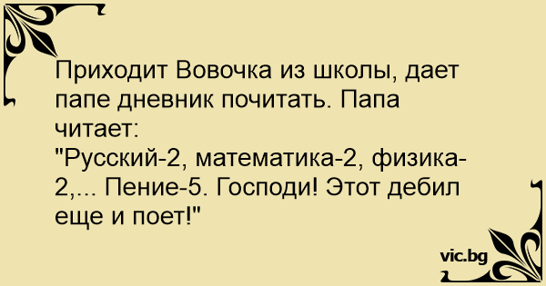 "Русский-2, математика-2, физика-2,... Пение-5. Господи! Этот дeбил еще и поет!"