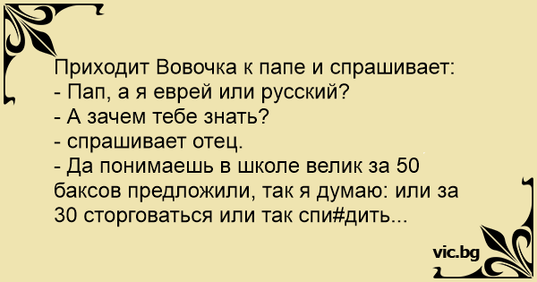 - Да понимаешь в школе велик за 50 баксов предложили, так я думаю: или за 30 сторговаться или так спи#дить...