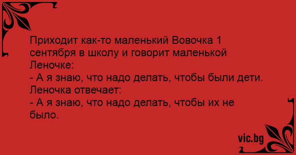 Приходит как-то маленький Вовочка 1 сентября в школу и говорит маленькой Леночке: