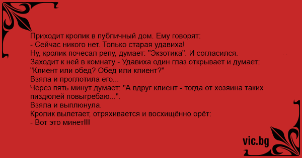 Приходит кролик в публичный дом. Ему говорят: