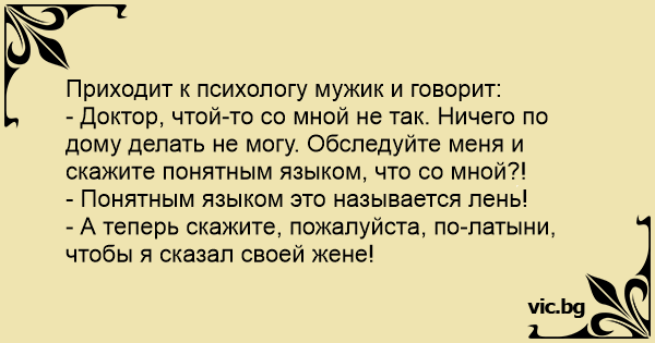 - А теперь скажите, пожалуйста, по-латыни, чтобы я сказал своей жене!