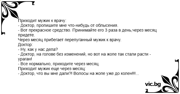 - Доктор, что вы мне дали?! Волосы на жопе уже до колен!!!