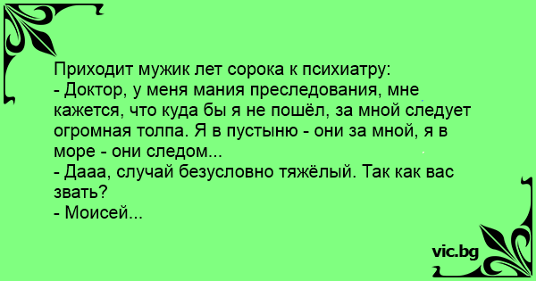 - Доктор, у меня мания преследования, мне кажется, что куда бы я не пошёл, за мной следует огромная толпа. Я в пустыню - они за мной, я в море - они следом...