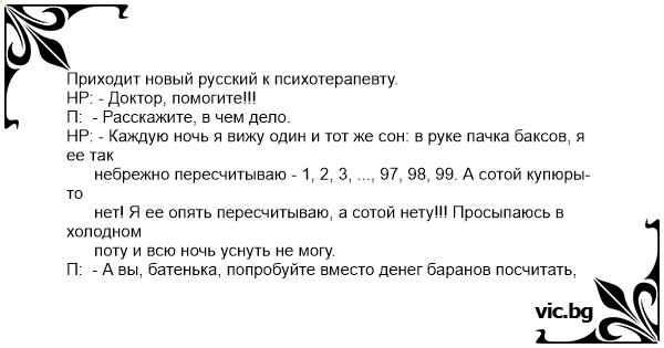 П: - А вы, батенька, попробуйте вместо денег баранов посчитать,