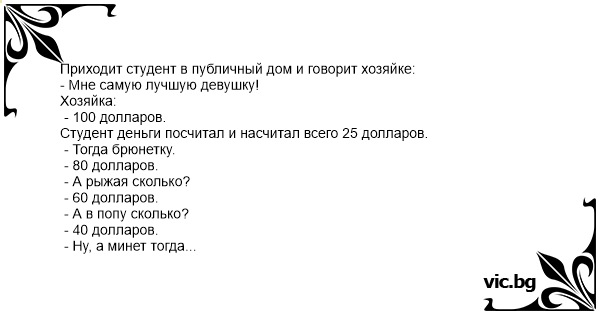 Совсем студент расстроился. Хотел уже уходить, но хозяйка ему говорит:
