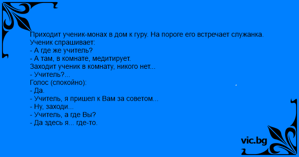 Приходит ученик-монах в дом к гуру. На пороге его встречает служанка. Ученик спрашивает: