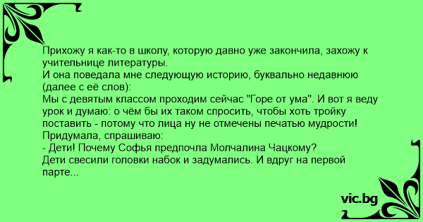 Прихожу я как-то в школу, которую давно уже закончила, захожу к учительнице литературы.