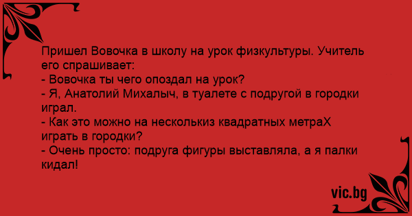 Пришел Вовочка в школу на урок физкультуры. Учитель его спрашивает: