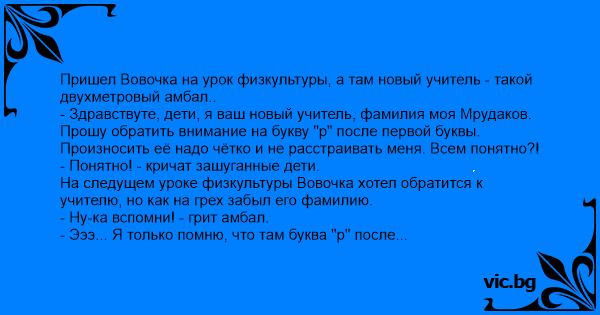 Пришел Вовочка на урок физкультуры, а там новый учитель - такой двухметровый амбал..