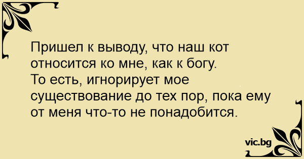 Дійшов висновку, що наш кіт ставиться до мене, як до бога. Тобто, ігнорує моє існування до тих пір, поки йому від мене щось не знадобиться.