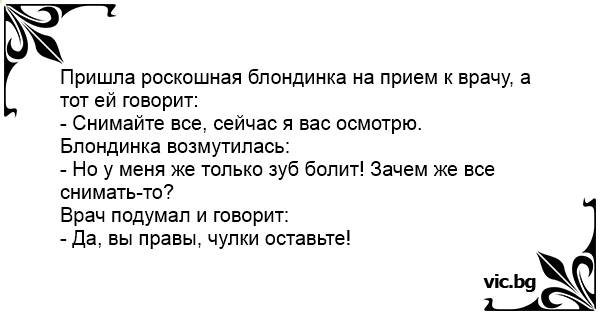 Пришла роскошная блондинка на прием к врачу, а тот ей говорит:
