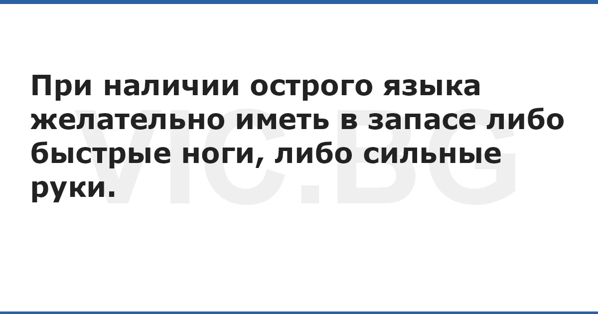 При наличии острого языка желательно иметь в запасе либо быстрые ноги, либо сильные руки.
