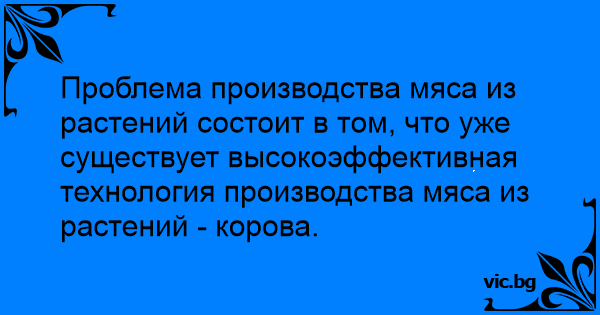 Проблема производства мяса из растений состоит в том, что уже существует высокоэффективная технология производства мяса из растений - корова.
