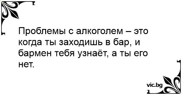 Проблемы с алкоголем – это когда ты заходишь в бар, и бармен тебя узнаёт, а ты его нет.