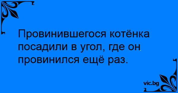 Провинившегося котёнка посадили в угол, где он провинился ещё раз.