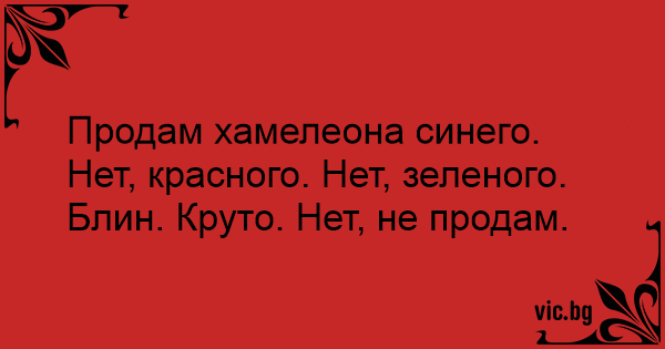 Продам хамелеона синего. Нет, красного. Нет, зеленого. Блин. Круто. Нет, не продам.