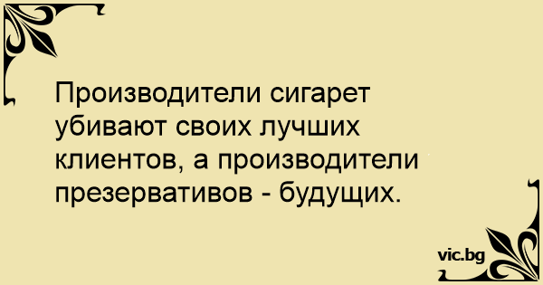 Производители сигарет убивают своих лучших клиентов, а производители презервативов - будущих.
