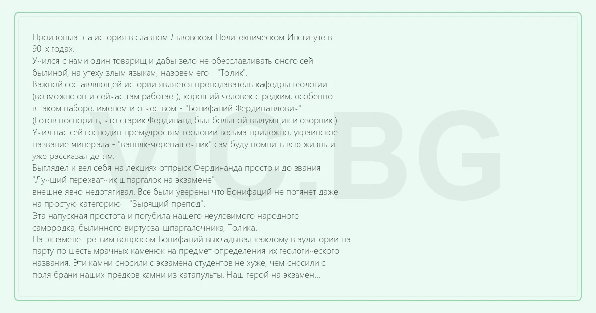 Учил нас сей господин премудростям геологии весьма прилежно, украинское