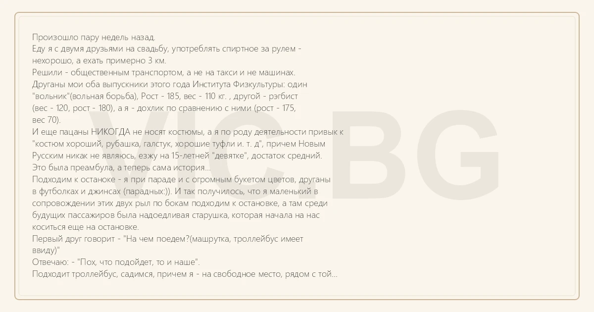 старушкой, а дружбаны рядом стоят, свое спортивное обсуждают, я по