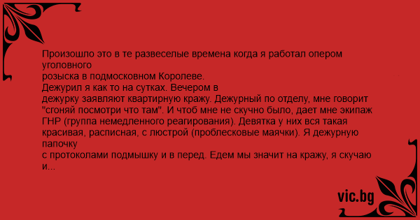 дежурку заявляют квартирную кражу. Дежурный по отделу, мне говорит