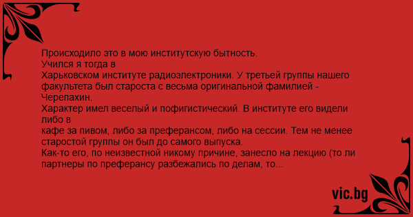 факультета был староста с весьма оригинальной фамилией - Черепахин.