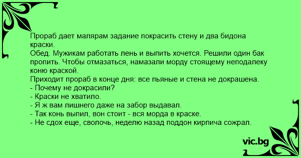 Приходит прораб в конце дня: все пьяные и стена не докрашена.