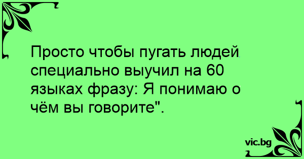 Просто чтобы пугать людей специально выучил на 60 языках фразу: Я понимаю о чём вы говорите".