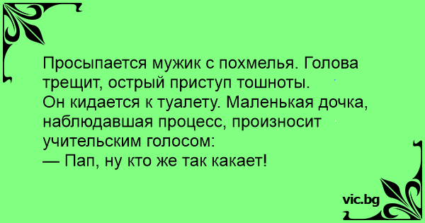 Он кидается к туалету. Маленькая дочка, наблюдавшая процесс, произносит учительским голосом: