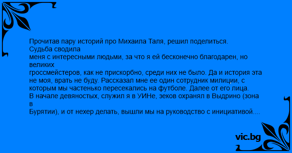 Прочитав пару историй про Михаила Таля, решил поделиться.