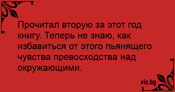 Прочитал вторую за этот год книгу. Теперь не знаю, как избавиться от этого пьянящего чувства превосходства над окружающими.