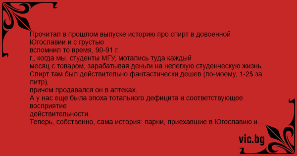 Прочитал в прошлом выпуске историю про спирт в довоенной Югославии и с грустью вспомнил то время, 90-91 г.