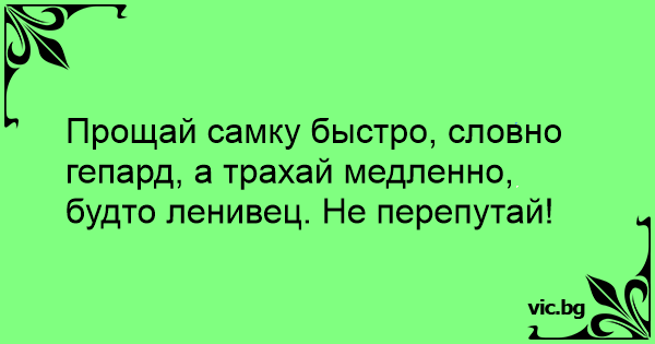 Прощай самку быстро, словно гепард, а трахай медленно, будто ленивец. Не перепутай!