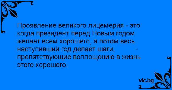 Проявление великого лицемерия - это когда президент перед Новым годом желает всем хорошего, а потом весь наступивший год делает шаги, препятствующие воплощению в жизнь этого хорошего.<br />