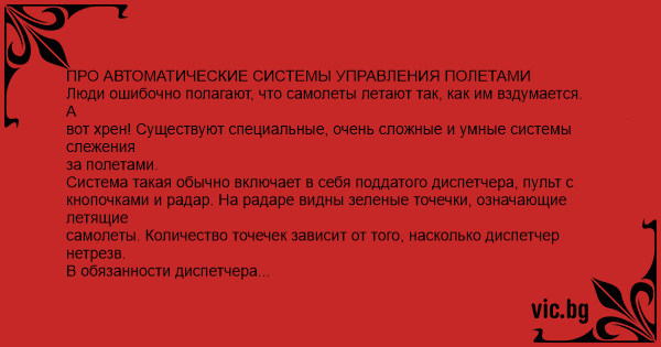 ПРО АВТОМАТИЧЕСКИЕ СИСТЕМЫ УПРАВЛЕНИЯ ПОЛЕТАМИ Люди ошибочно полагают, что самолеты летают так, как им вздумается.