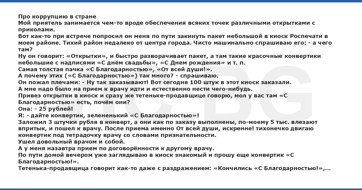 Привез открытки в киоск и сразу же тетеньке-продавщице говорю, мол у вас там «С Благодарностью» есть, почём они?