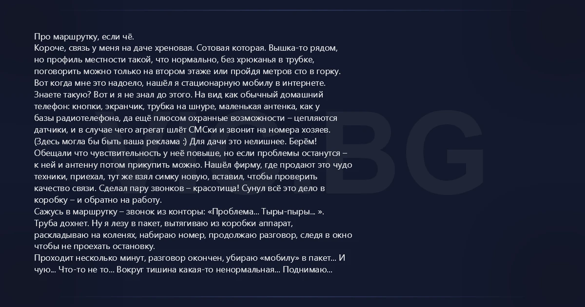 Короче, связь у меня на даче хреновая. Сотовая которая. Вышка-то рядом,