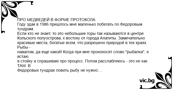 ПРО МЕДВЕДЕЙ В ФОРМЕ ПРОТОКОЛА Году эдак в 1986 пришлось мне маленько побегать по Федоровым тундрам.