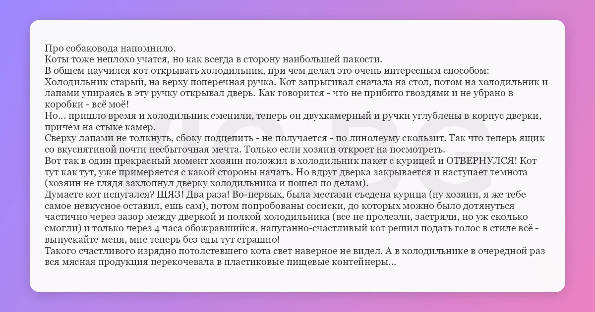 В общем научился кот открывать холодильник, при чем делал это очень интересным способом: