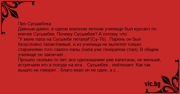 Давным-давно, в одном военном летном училище был курсант по кличке Сусымбек. Почему Сусымбек? А потому, что: