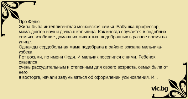 Лет восьми, по имени Федя. И мальчик поселился с ними. Ребенок оказался