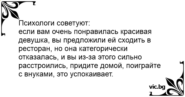 если вам очень понравилась красивая девушка, вы предложили ей сходить в ресторан, но она категорически отказалась, и вы из-за этого сильно расстроились, придите домой, поиграйте с внуками, это успокаивает.