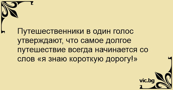Путешественники в один голос утверждают, что самое долгое путешествие всегда начинается со слов «я знаю короткую дорогу!»