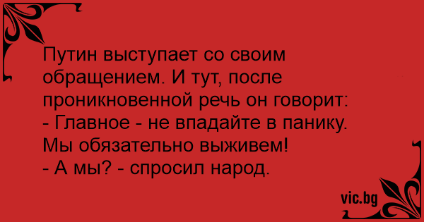 Путин выступает со своим обращением. И тут, после проникновенной речь он говорит: